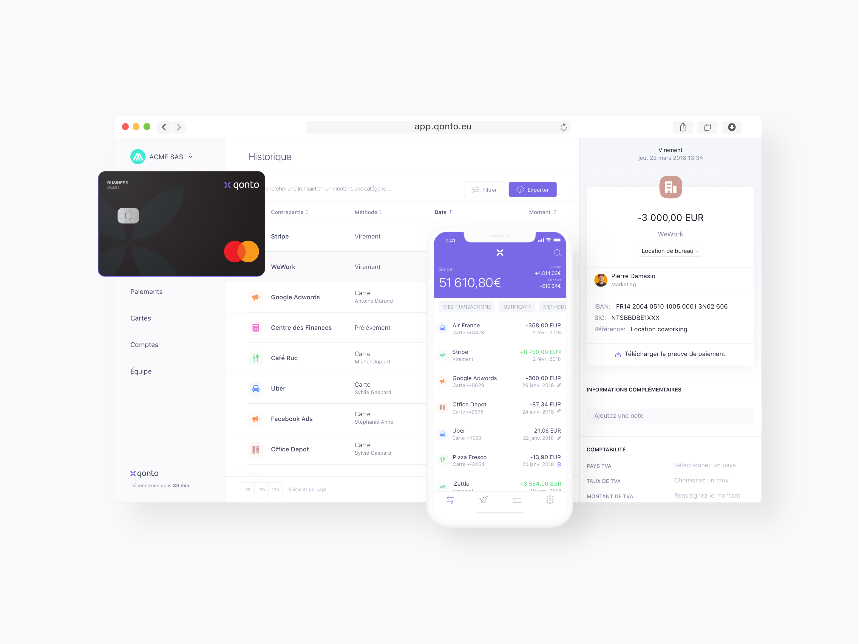 Qonto ermöglicht es Unternehmen und Selbstständigen, Zeit zu sparen, indem sie die Verwaltung ihrer Finanzen zentralisieren: