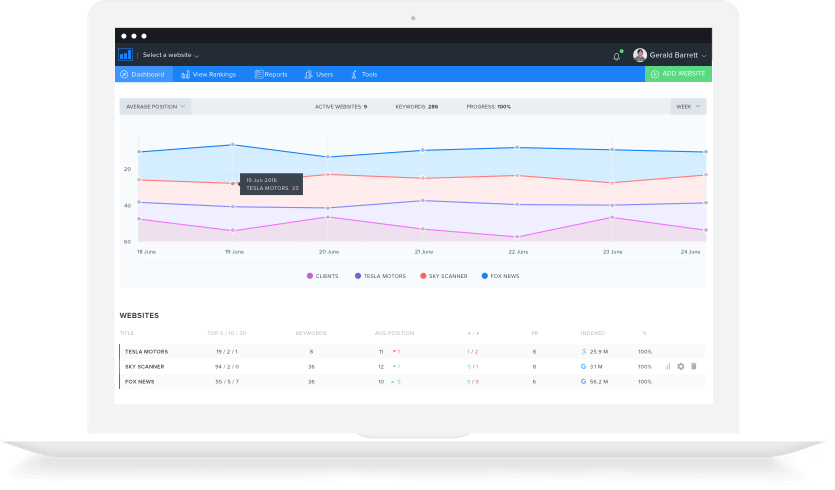 Mit dem Keyword-Ranking-Verfolgungstool können Sie regelmäßig verfolgen, wie gut Ihre Website in Suchmaschinen rangiert.- Verfolgung von Keywords in verschiedenen Suchmaschinen und Geräten
